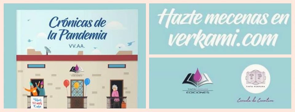 Los relatos de está antología forman parte del proyecto de la Cuarentena de la Escritura de la Escuela Tinta Púrpura, dónde un jurado ha seleccionado los más representativos. Durante el confinamiento muchos son los escritores que se han esforzado por dejar una crónica de lo que personas como ellos han estado viviendo en estos días. «Crónicas de la Pandemia», que edita Tinta Púrpura Ediciones es el primer libro que reúne, en 30 relatos, las vivencias de las personas confinadas, de los enfermos, del personal sanitario, de ausencias, de hospitales, de incertidumbre y también de cómo unidos hemos sido y somos más fuertes. Y que, además, tiene como fin ayudar a las víctimas de la crisis económica derivada de la pandemia. Todos los beneficios irán al proyecto de ayuda alimentaria de Uninicio, ubicado en Madrid, una de las ciudades más castigadas por la ola de pobreza derivada de la pandemia mundial. Teneís más detalles del proyecto en su web